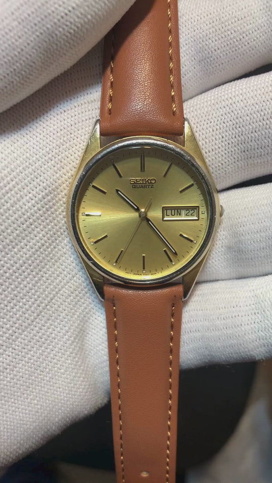Reloj Seiko Hombre Año 1986 Vintage Sunburst Dorado Sq