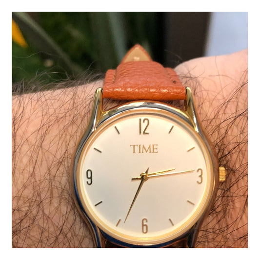 Reloj Time Hombre Fines 90s Correa Camel Nueva Minimalista