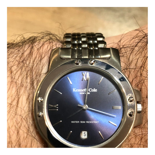 Reloj Kenneth Cole Vintage Años 2.000 Dial Azul Hombre Pulsera Completa