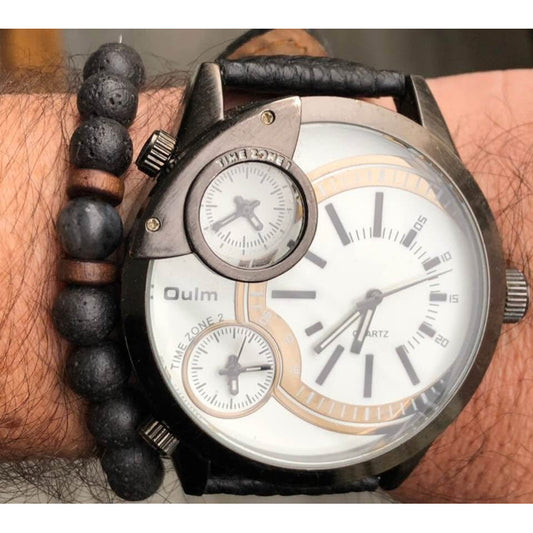 Reloj Oulm Con 3 Relojes En El Dial Funcionando Hombre 56mm