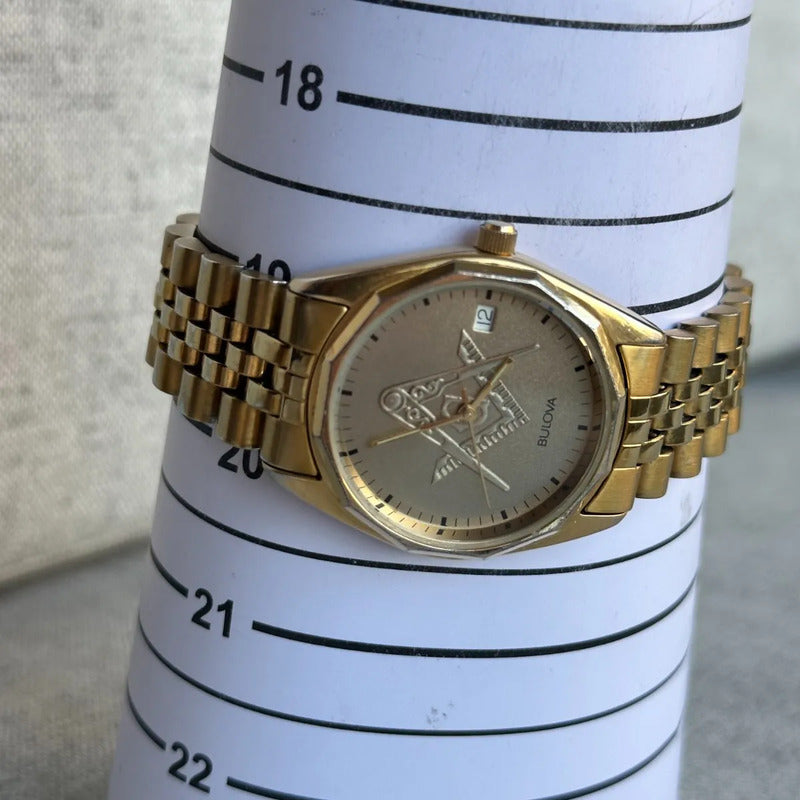 Reloj Bulova Masónico Hombre Año 1994 Compás Escuadra En Relieve