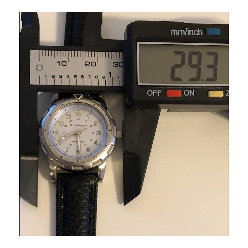 Posee correa nueva, tiene el logo de la marca en la corona y la tapa es atornillada. Diseño elegante y funciona perfecto. Una muy buena pieza de la marca Columbia Sportswear Company.