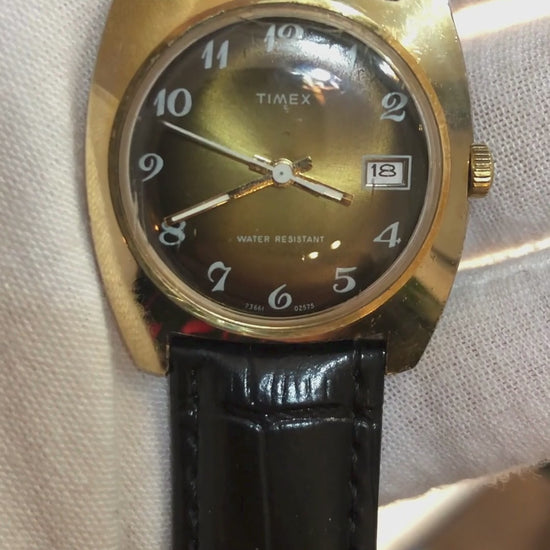 Reloj Timex Sunburst Café-oro A Cuerda Vintage Año 1975 Único